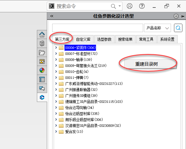 第三步:点击上方【第三方库】选型卡,重建目录即可。