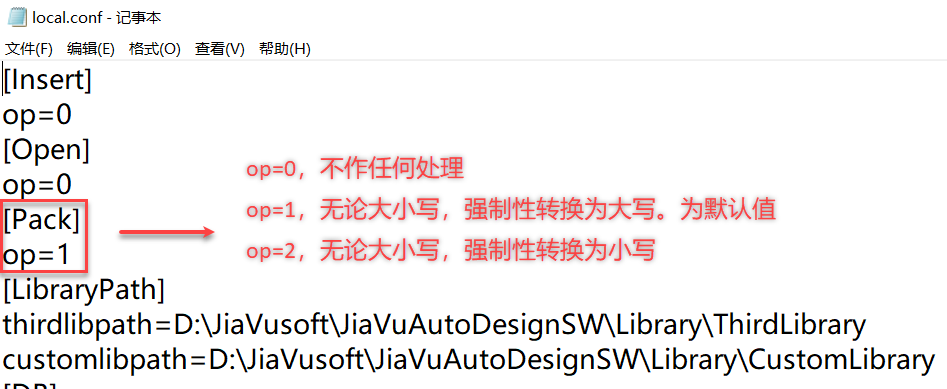 用“记事本”打开安装目录下的local.conf文件,修改[Pack]处的op值。