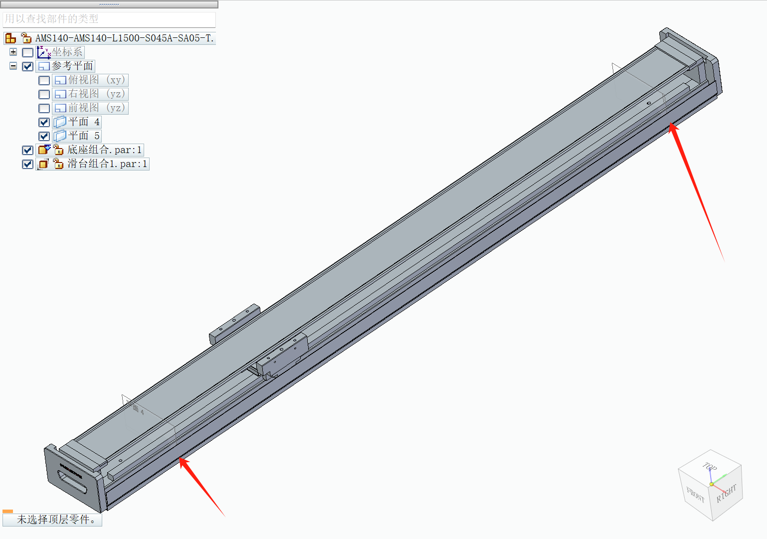 2,首先基于两侧端面,分别创建2个平面,作为滑台运动的起始位置,和终点位置。这两个平面到端面的距离,是可以作为变量来控制,根据不同的行程取对应的距离值。
