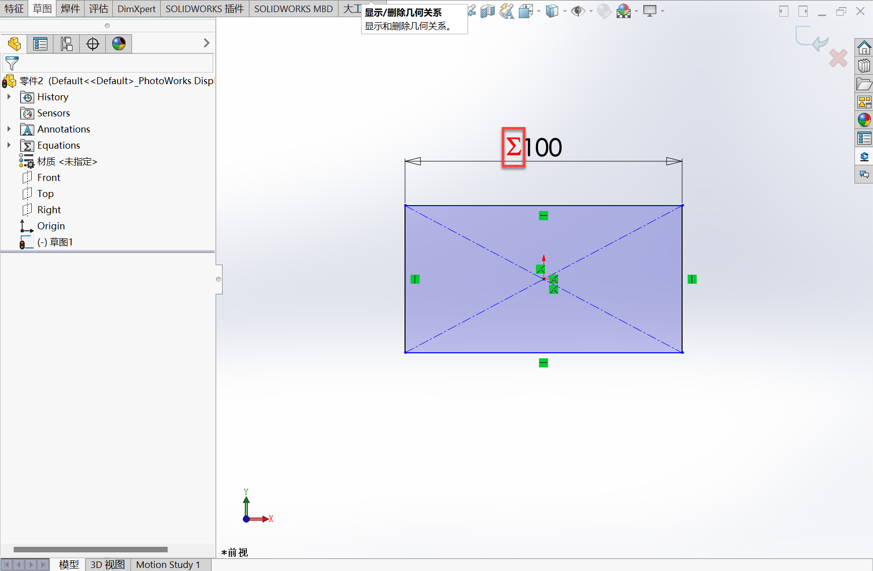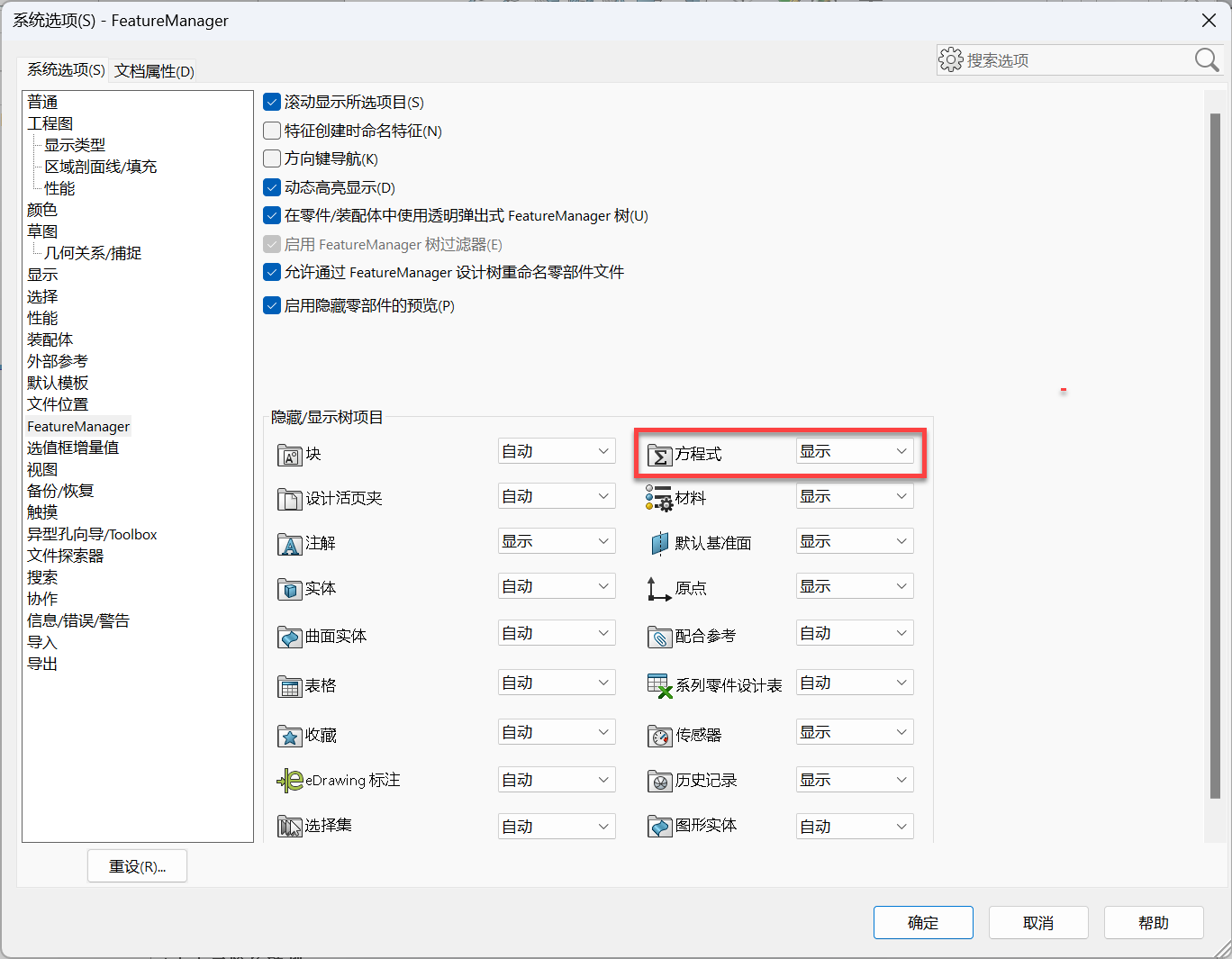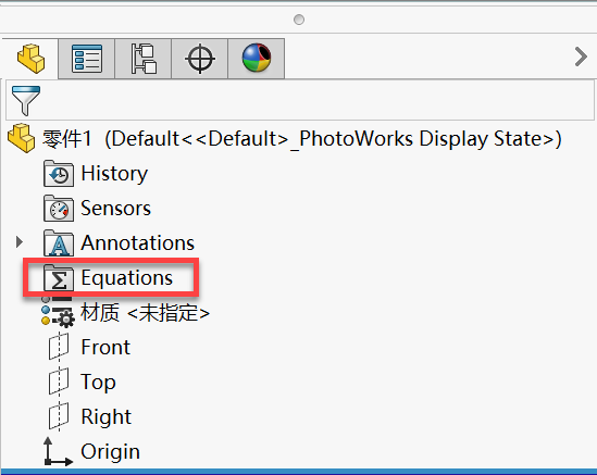 如果SOLIDWORKS界面上没有显示方程式,如何把它显示出来