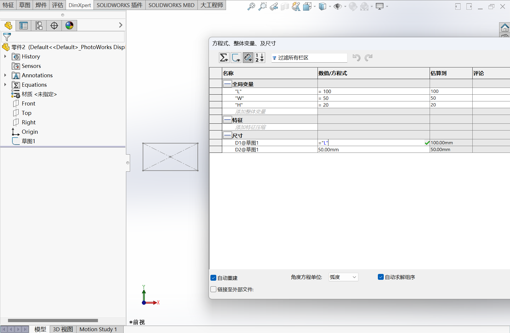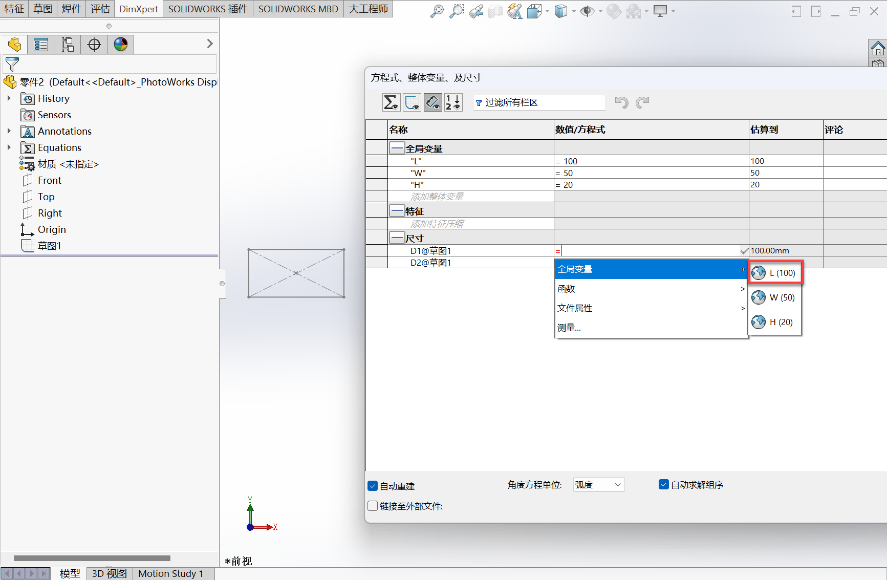 参数化建模-SOLIDWORKS方程式(基础篇)