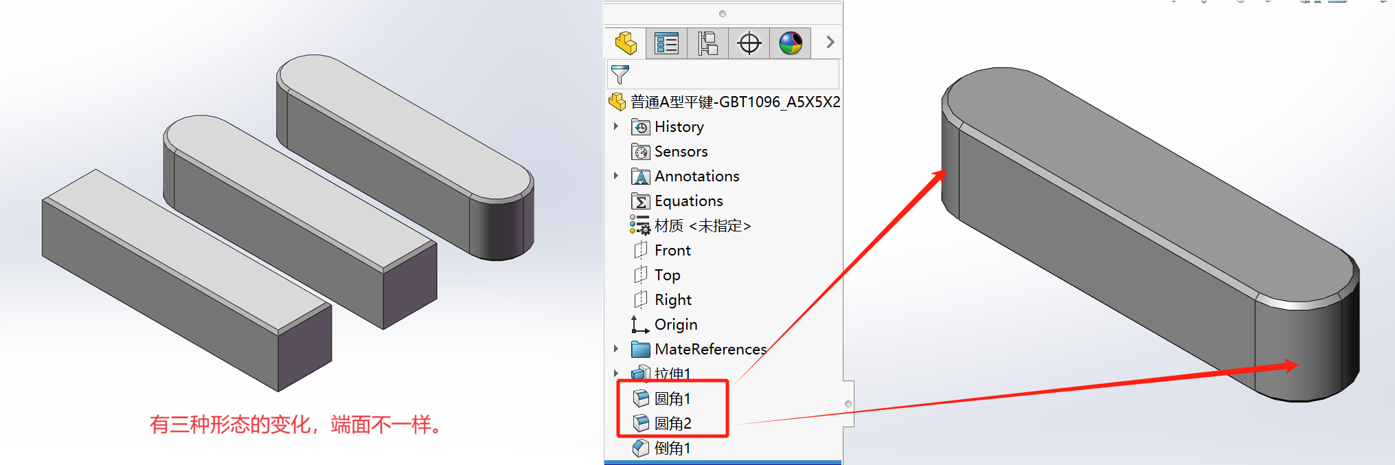 比如:一个产品,有三种形态变化,区别是端面分别是2个圆角,一个圆角一个直角,2个直角; 如果你用一个圆角命令将两边一起倒圆角。显然,一个圆角一个直角的产品就无法通过压缩圆角特征来满足。所以考虑设计意图,那就要分2个圆角特征创建。